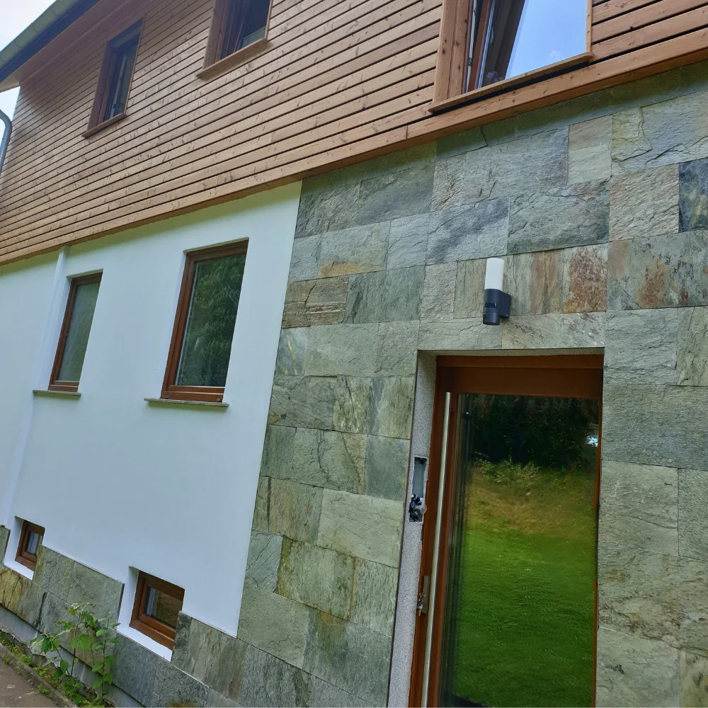 Kamień elewacyjny kwarcytowy Silver Shine to naturalny materiał, który doskonale sprawdza się na elewacjach i ścianach wewnętrznych. Podkreśla charakter aranżacji i nadaje jej ponadczasowy wygląd.