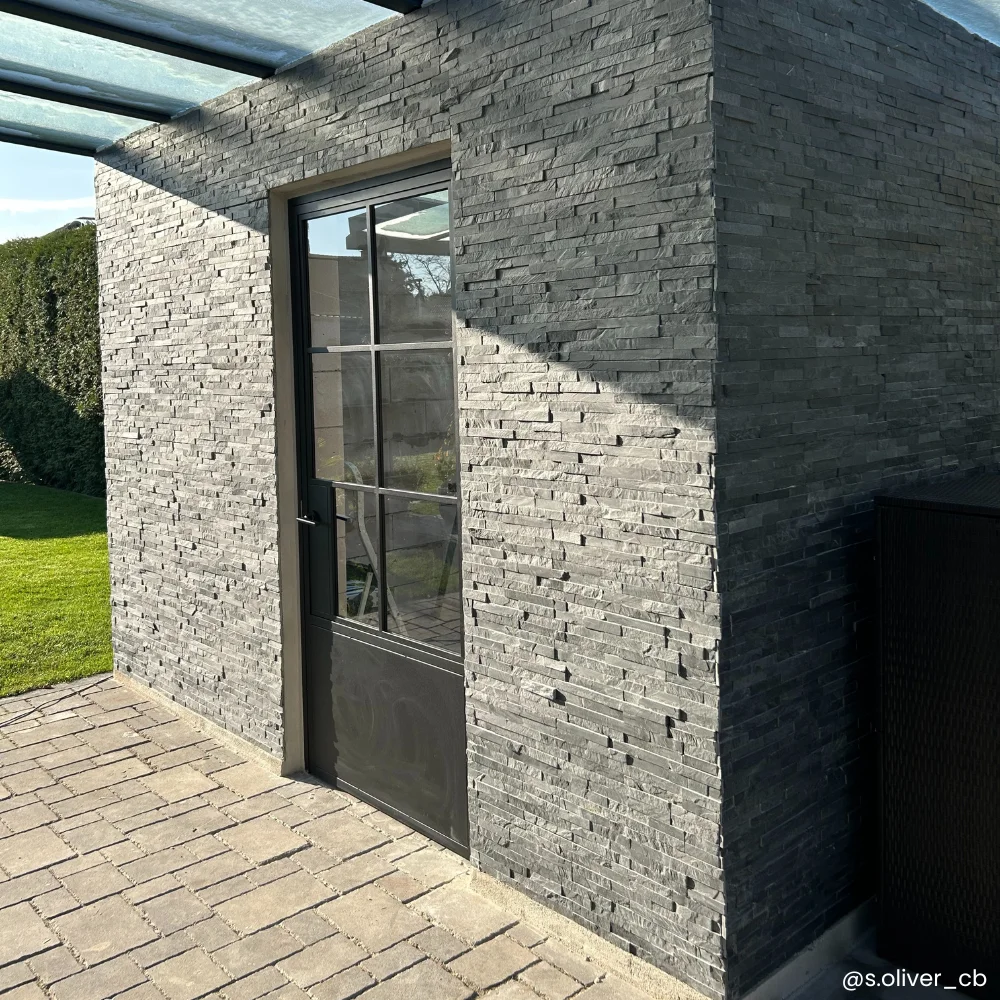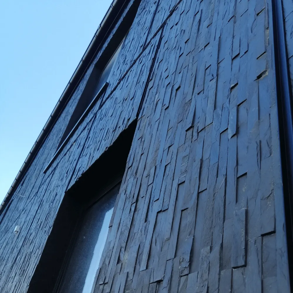 Kamień elewacyjny łupek Black Slate Stackstone to trwałe i estetyczne rozwiązanie do wykończenia ścian zewnętrznych i wewnętrznych. Jego naturalna struktura nadaje powierzchni wyrazistości i głębi.
