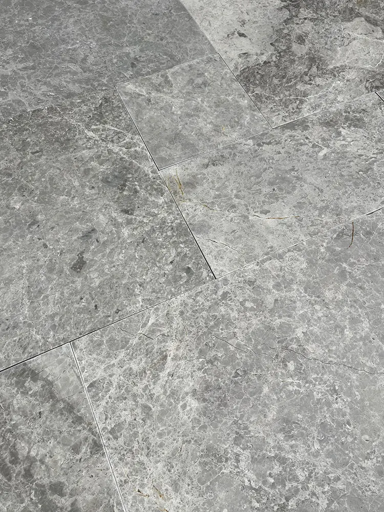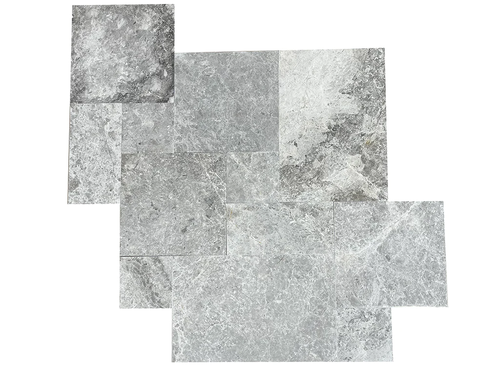 Komplet rzymski marmurowy Tundra Grey to zestaw płyt o różnych wymiarach, przeznaczony do wykończenia podłóg i powierzchni wewnętrznych. Naturalny marmur nadaje wnętrzu elegancki i ponadczasowy charakter.