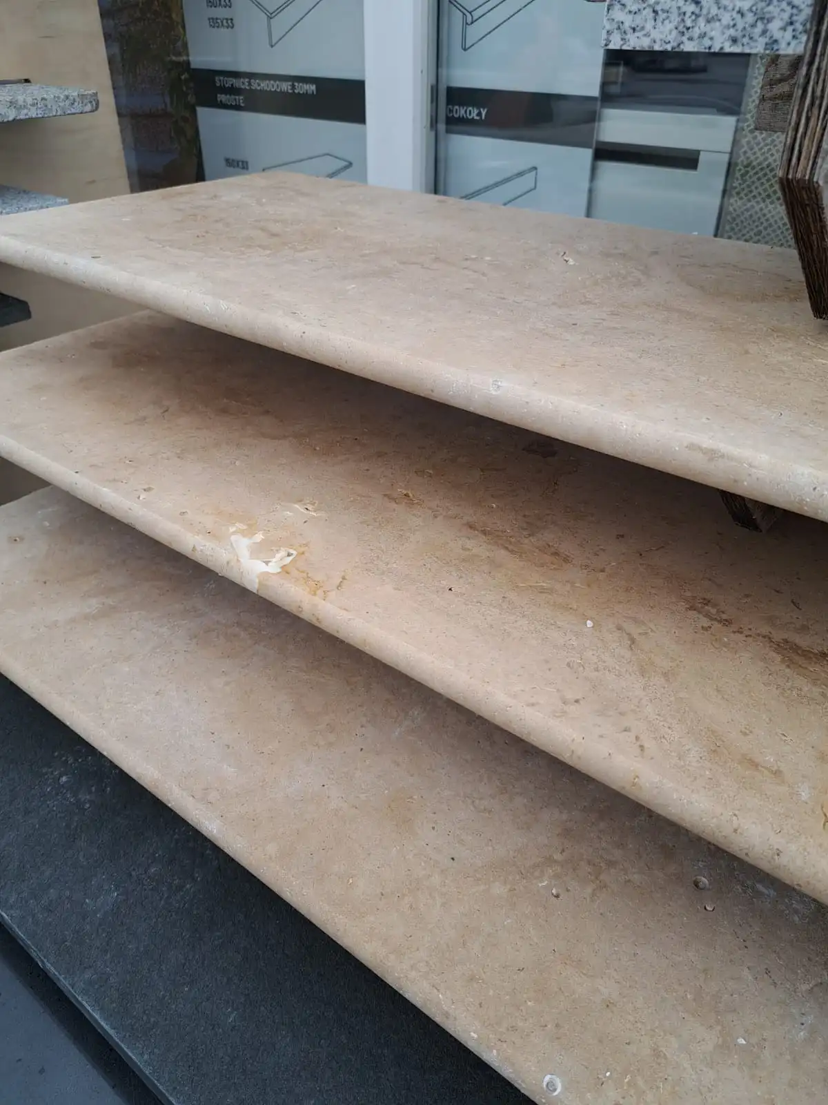 Powierzchnia trawertynu charakteryzuje się delikatną strukturą i naturalnymi porami, które nadają parapetowi lekkości i elegancji. To materiał chętnie stosowany w aranżacjach inspirowanych naturą.