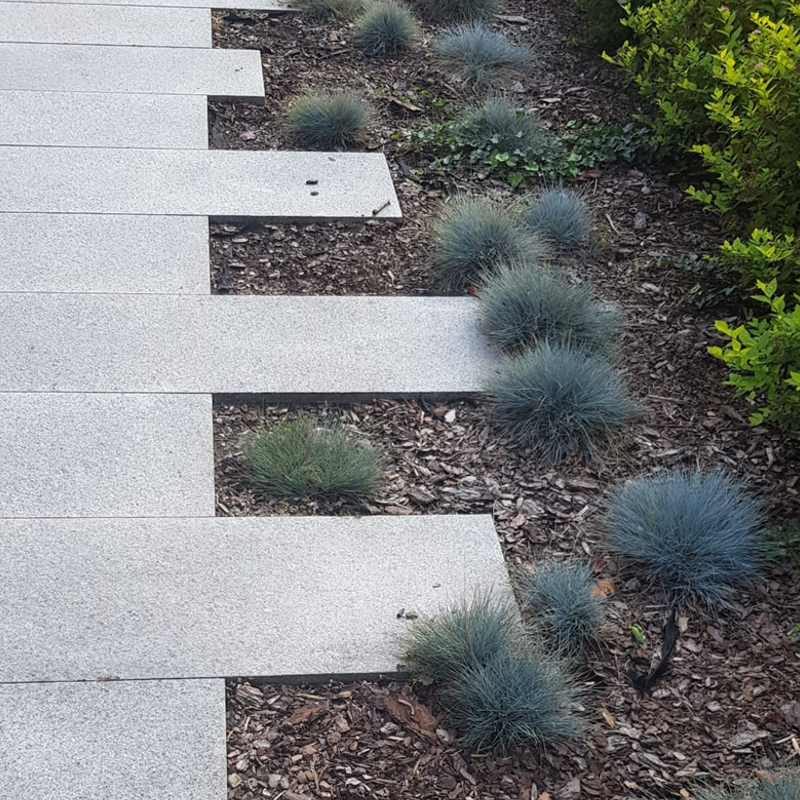 Płytka ogrodowa granitowa G602 Bianco Sardo to trwały materiał przeznaczony do wykonywania nawierzchni zewnętrznych. Dzięki swojej grubości i wytrzymałości doskonale sprawdza się w ogrodzie oraz wokół domu.