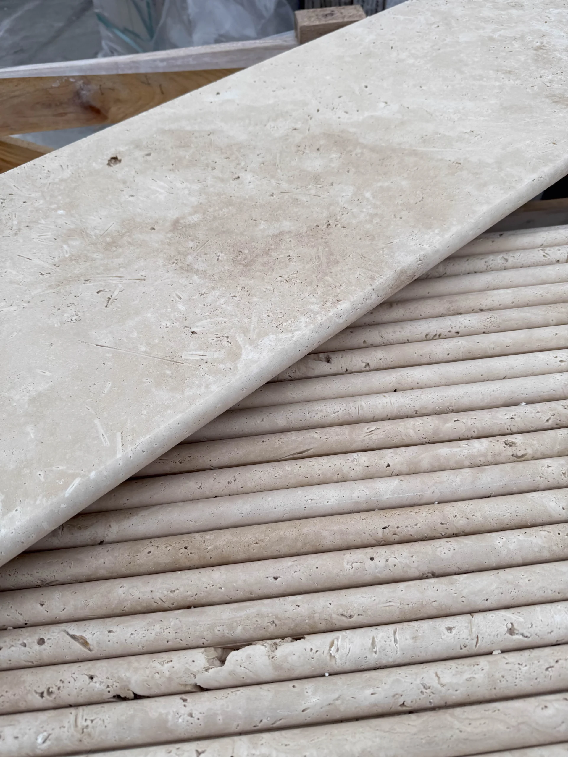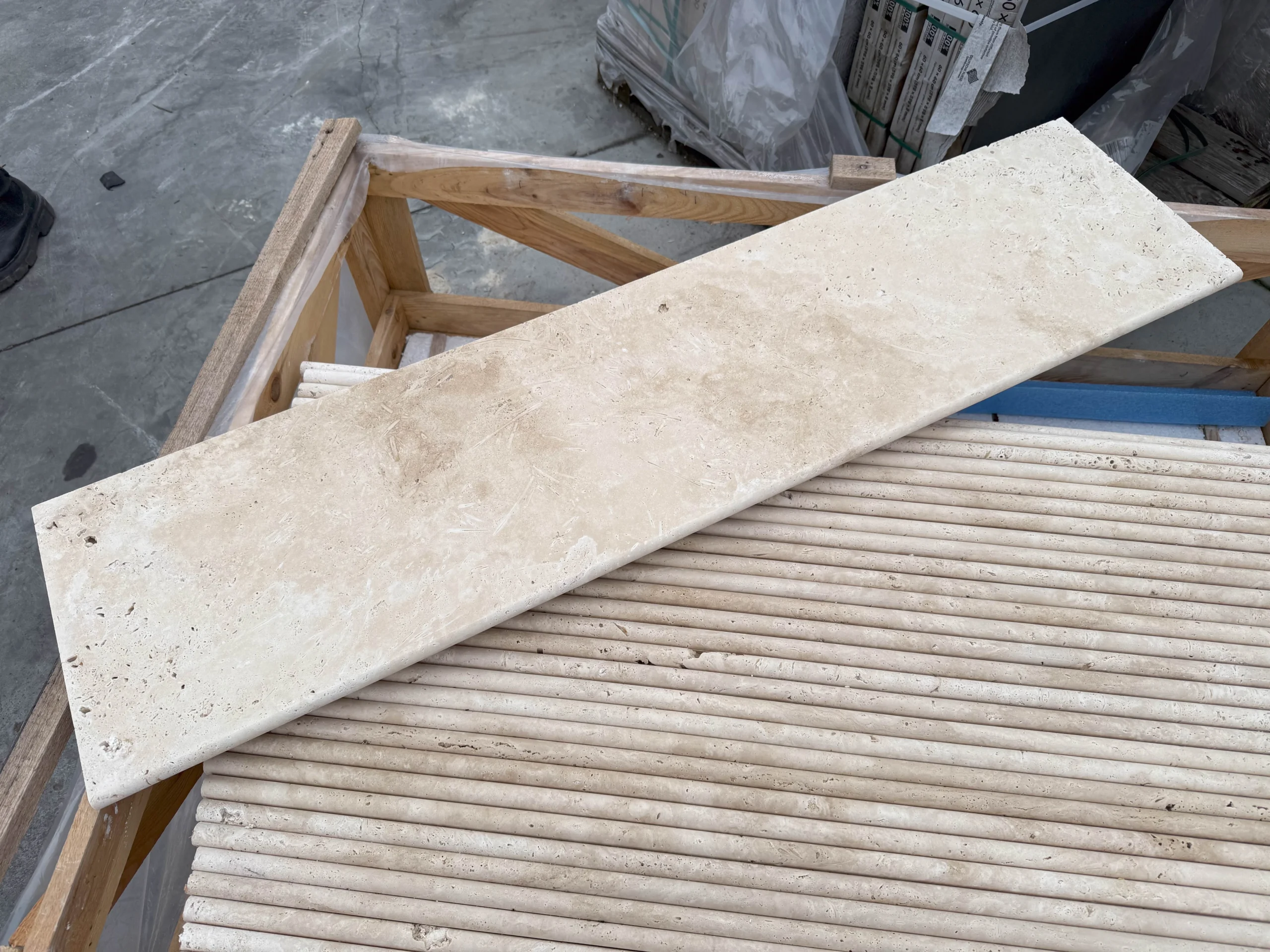 Stopnica trawertynowa Ivory Classic bullnose to estetyczny element wykończeniowy przeznaczony do budowy schodów wewnętrznych i zewnętrznych. Naturalna struktura kamienia nadaje schodom ciepły i elegancki charakter.